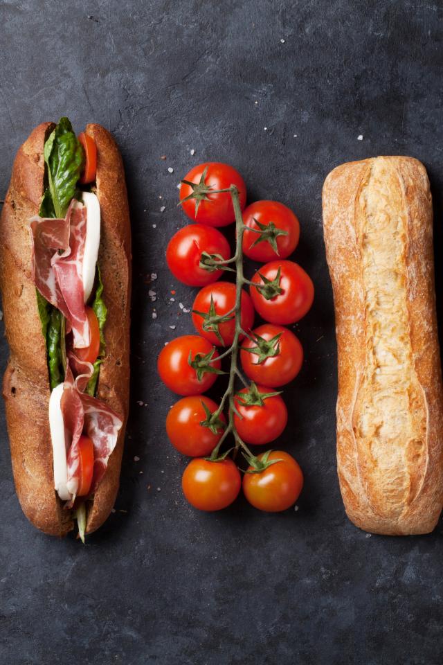 Wallpaper Sandwich with cabbage and tomatoes on the table