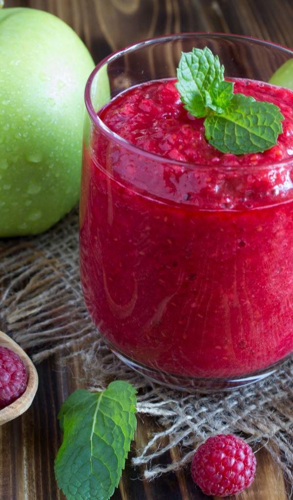 Wallpaper Smoothies with raspberries and green apples in a glass