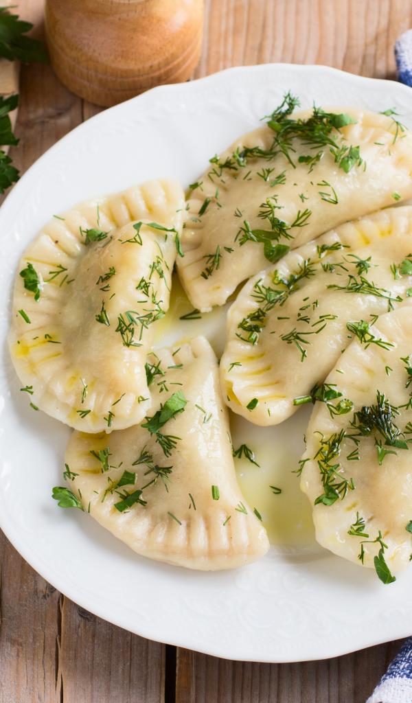 Wallpaper Vareniki with greens on a white plate