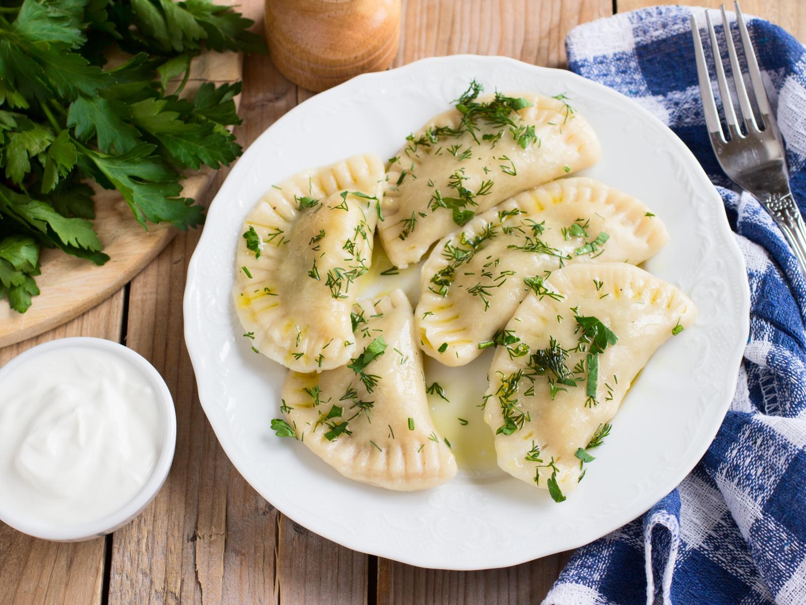 Wallpaper Vareniki with greens on a white plate