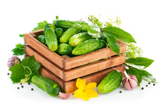 Wallpaper Green fresh cucumber in a wooden box on a white background