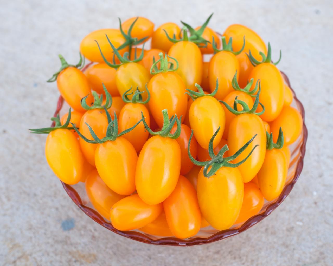 » Wallpaper Orange tomatoes on a plate close up