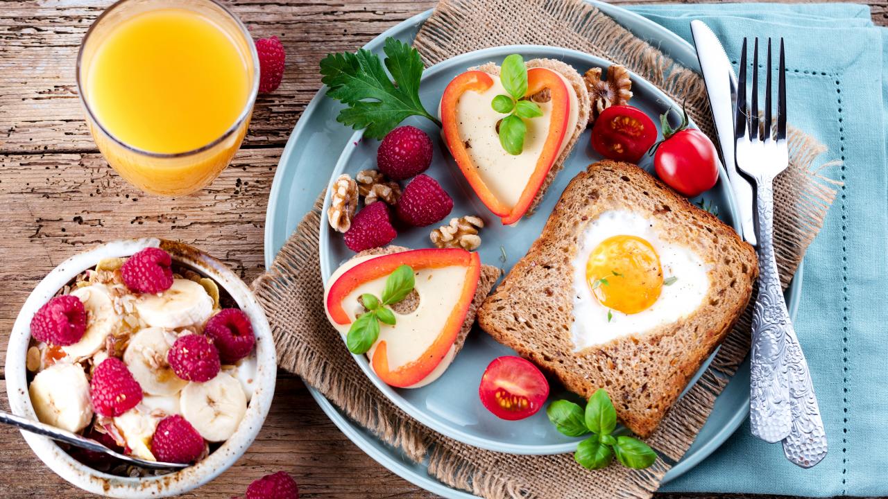 Wallpaper Delicious light breakfast on the table with orange juice