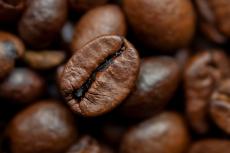 Wallpaper White cup with roasted coffee beans stands on the table with coffee beans