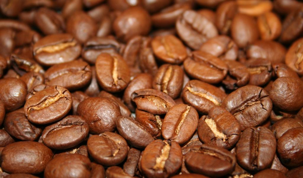 Wallpaper White cup with roasted coffee beans stands on the table with coffee beans
