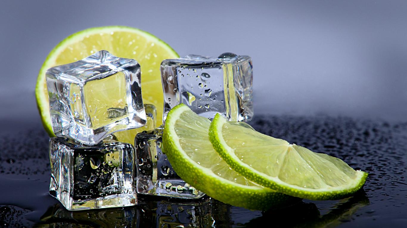 Wallpaper Cold ice cubes with slices of lime