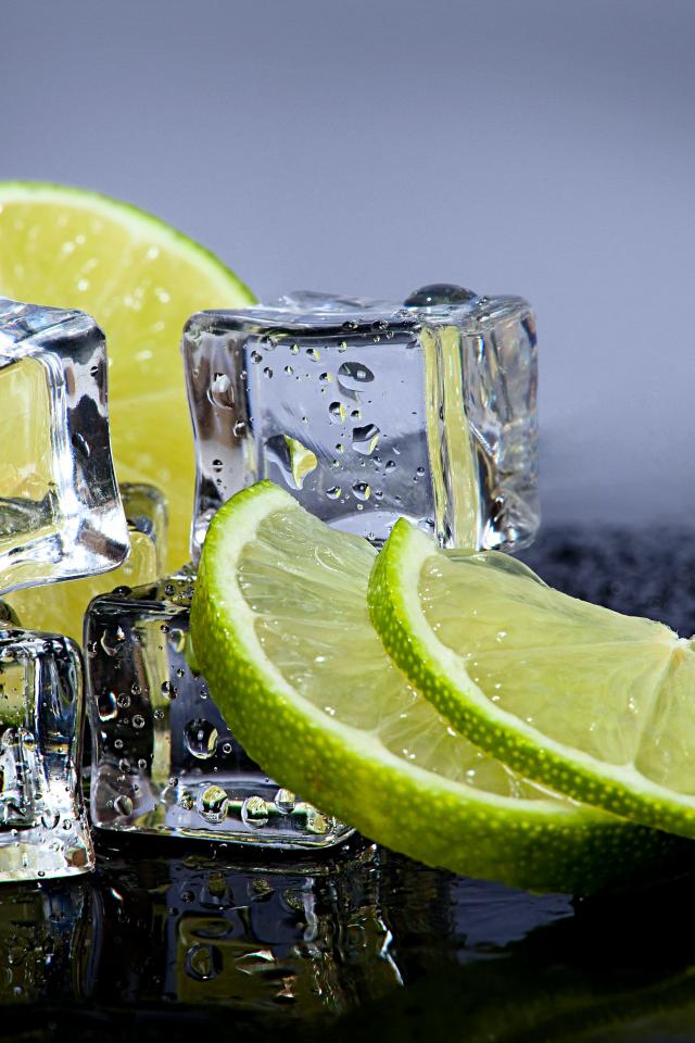 Wallpaper Cold ice cubes with slices of lime