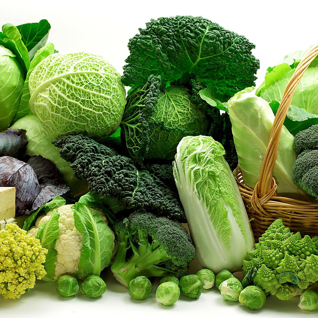 Wallpaper Many different types of cabbage on a white background