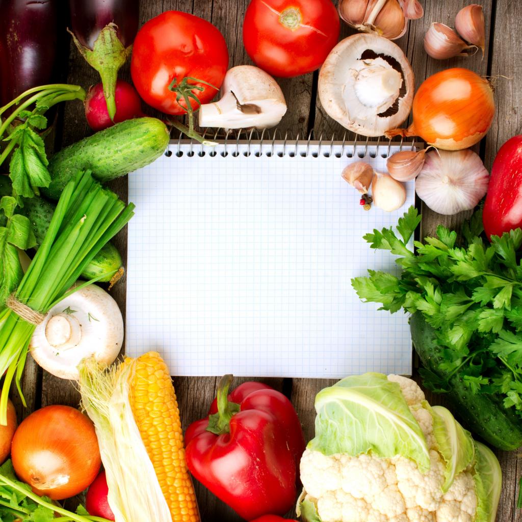 Wallpaper Notebook with fresh vegetables on the table