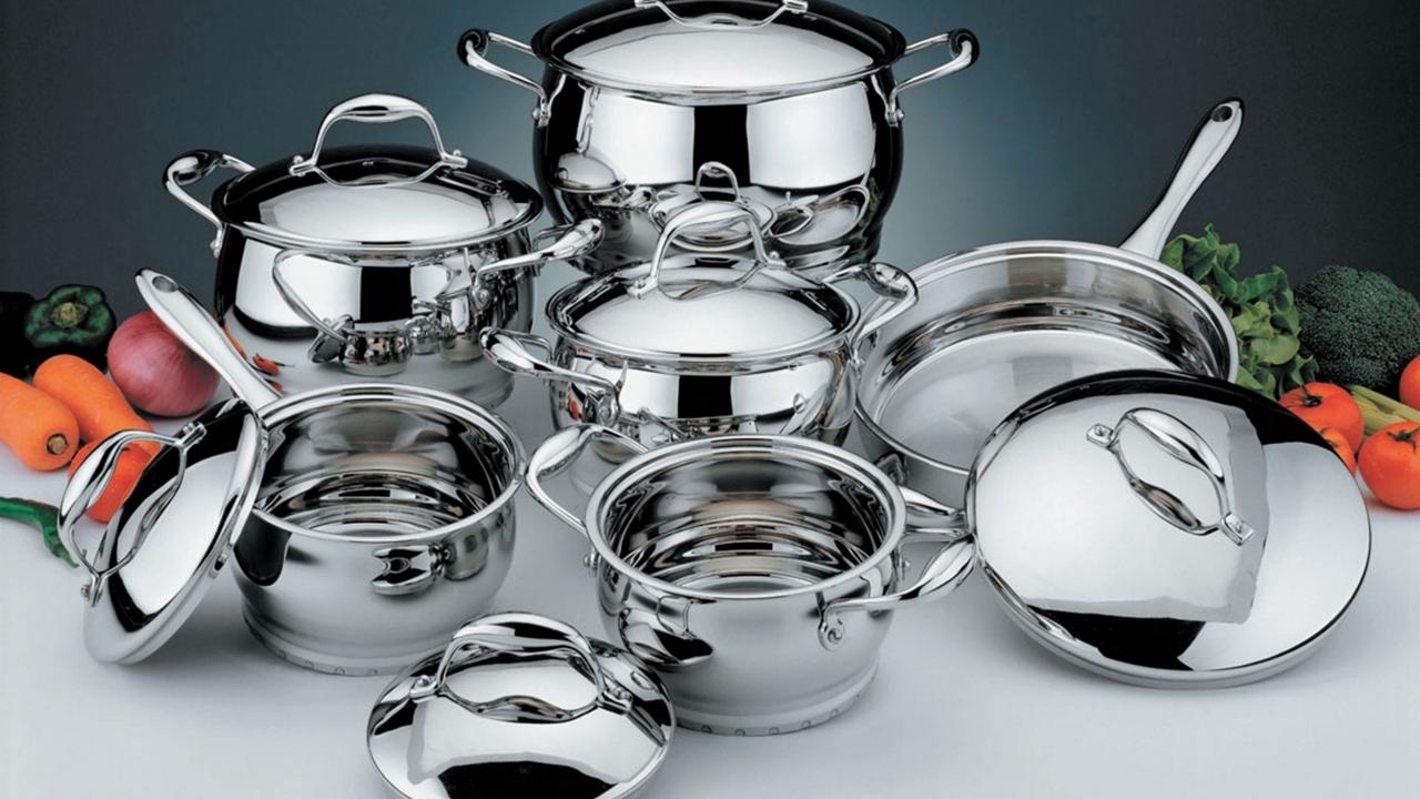 Wallpaper A set of beautiful new shiny dishes in the kitchen