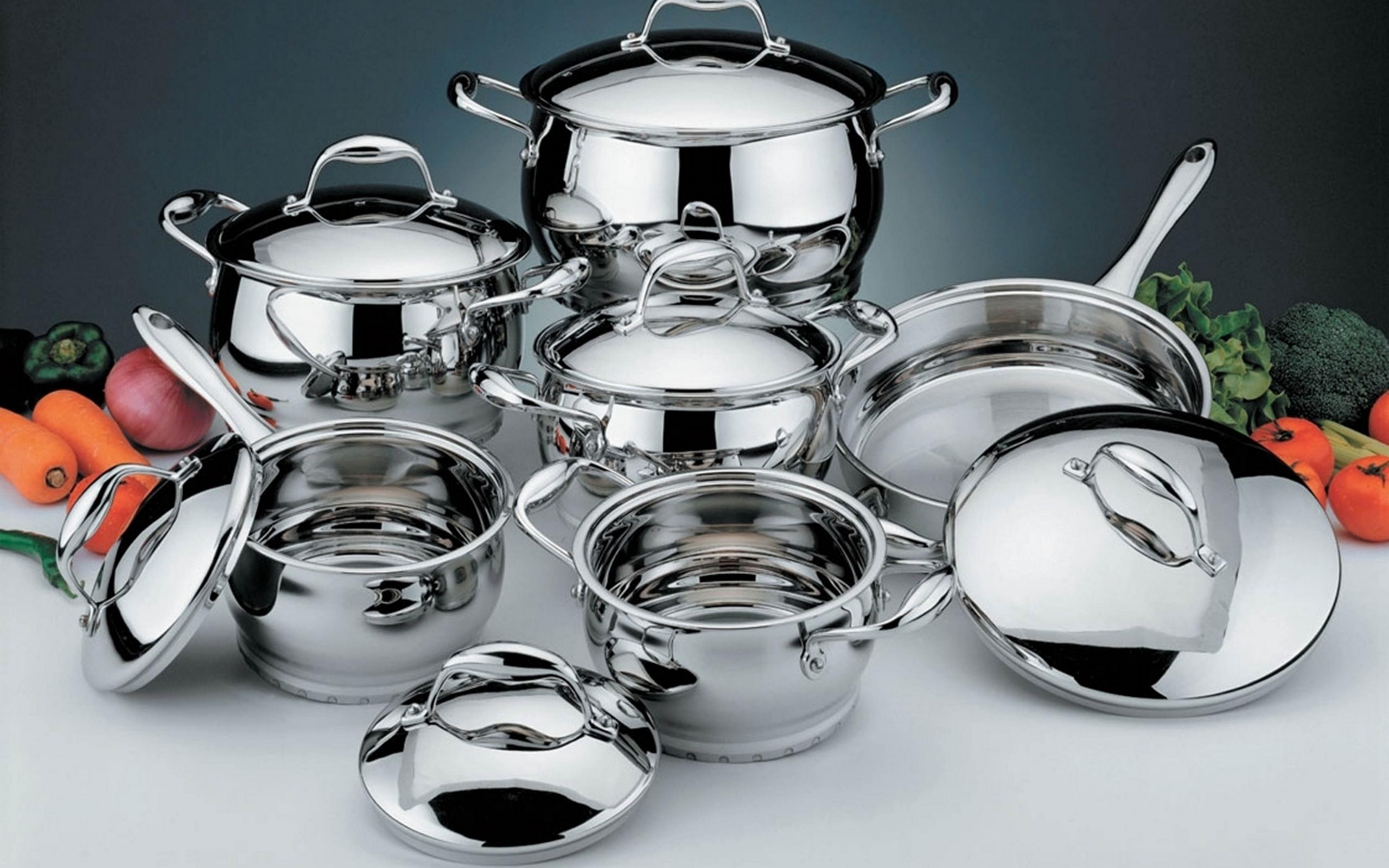 Wallpaper A set of beautiful new shiny dishes in the kitchen