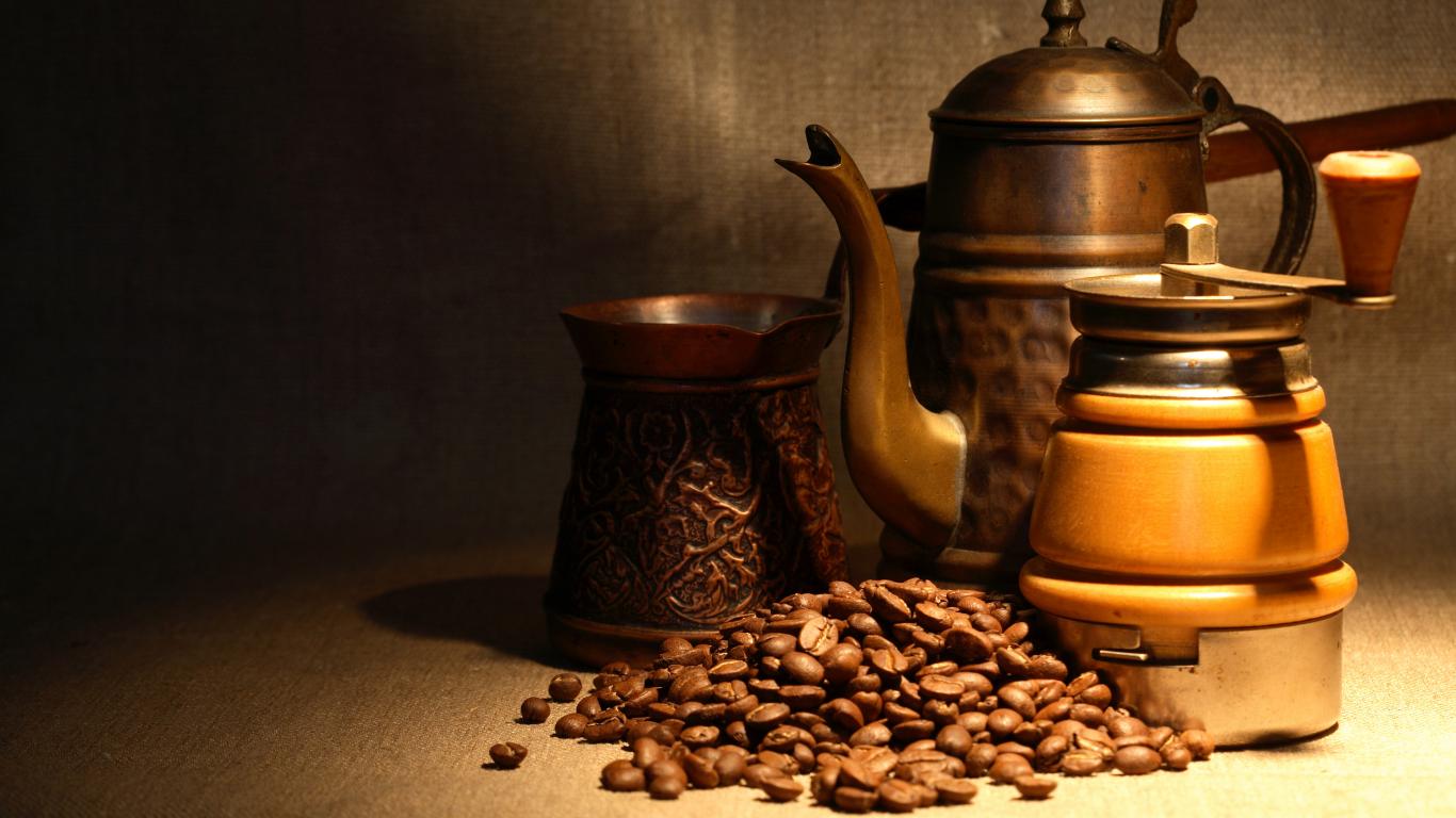 Wallpaper Coffee grinder, Turk, kettle and coffee beans on the table