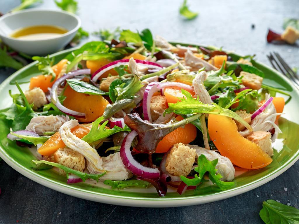 Wallpaper Appetizing chicken salad on a large plate