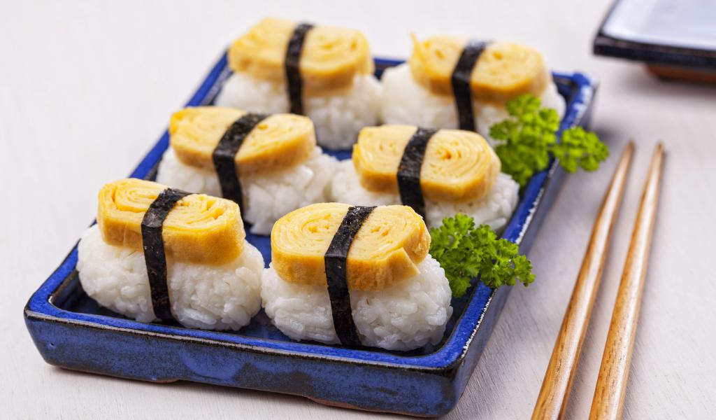 Wallpaper Japanese food on the table with chopsticks