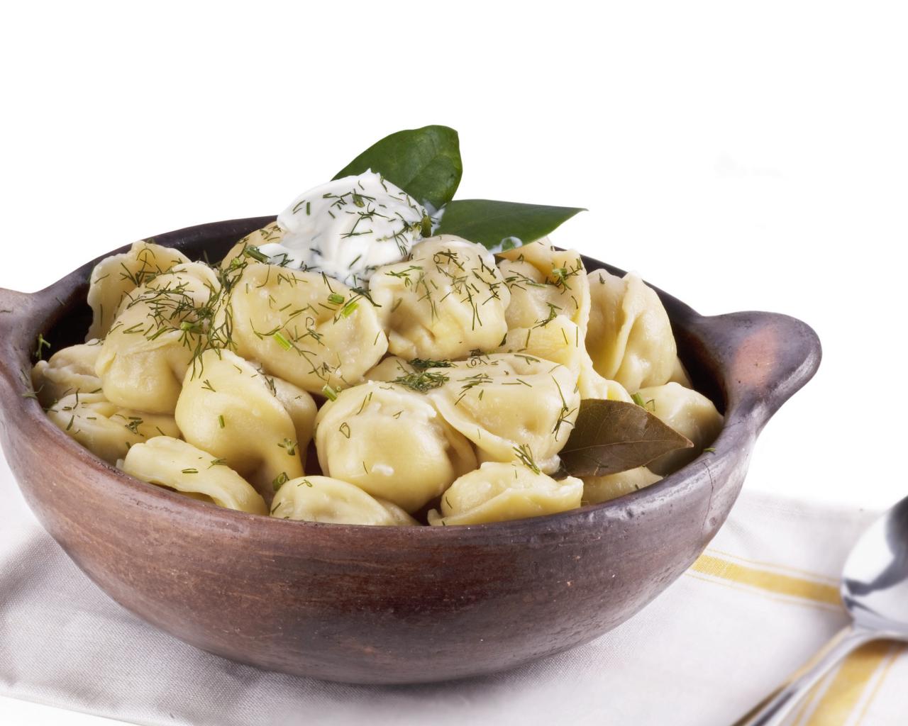 Wallpaper Dumplings in a bowl on a white background with a spoon