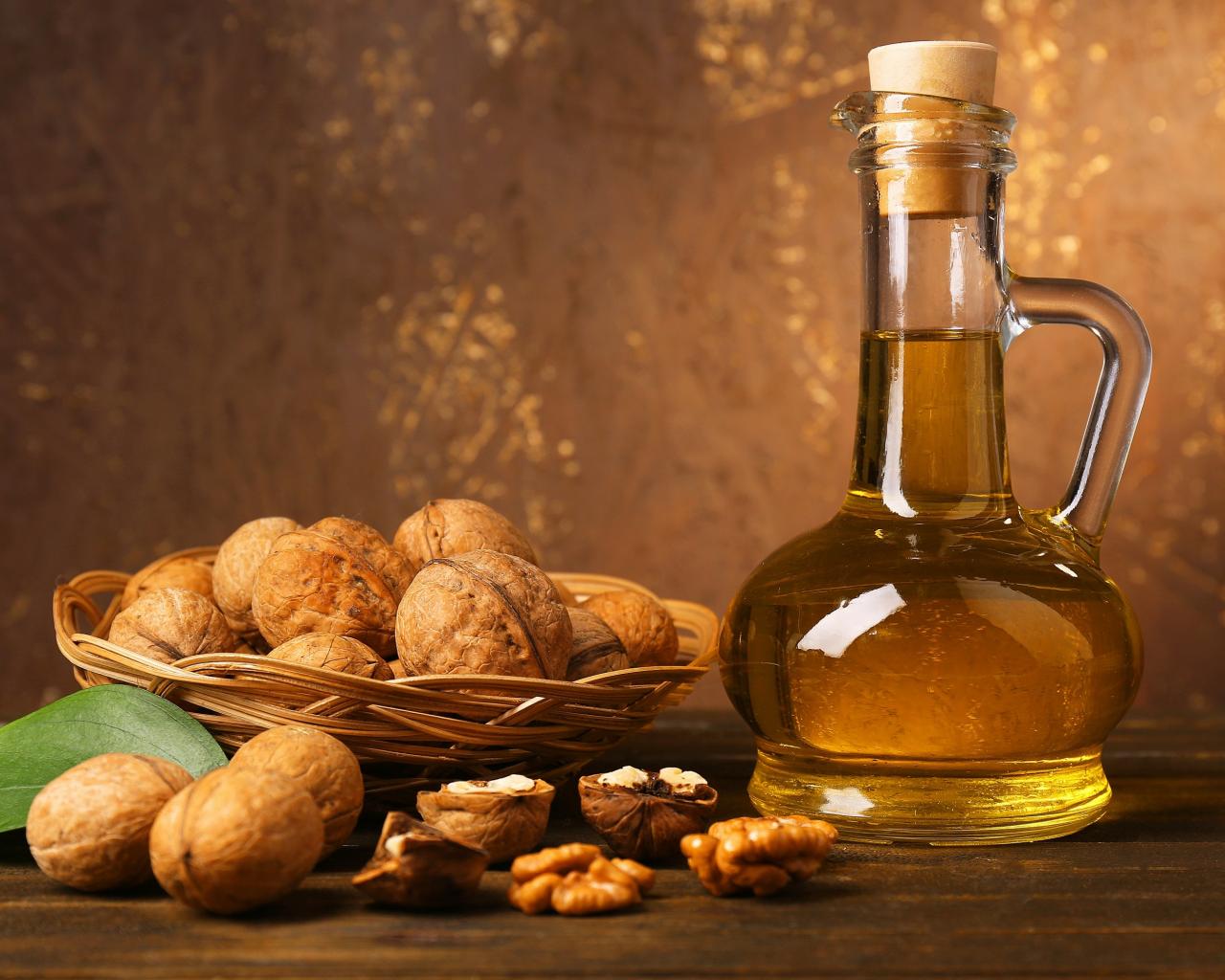 Wallpaper Butter in a glass bottle on a table with walnuts