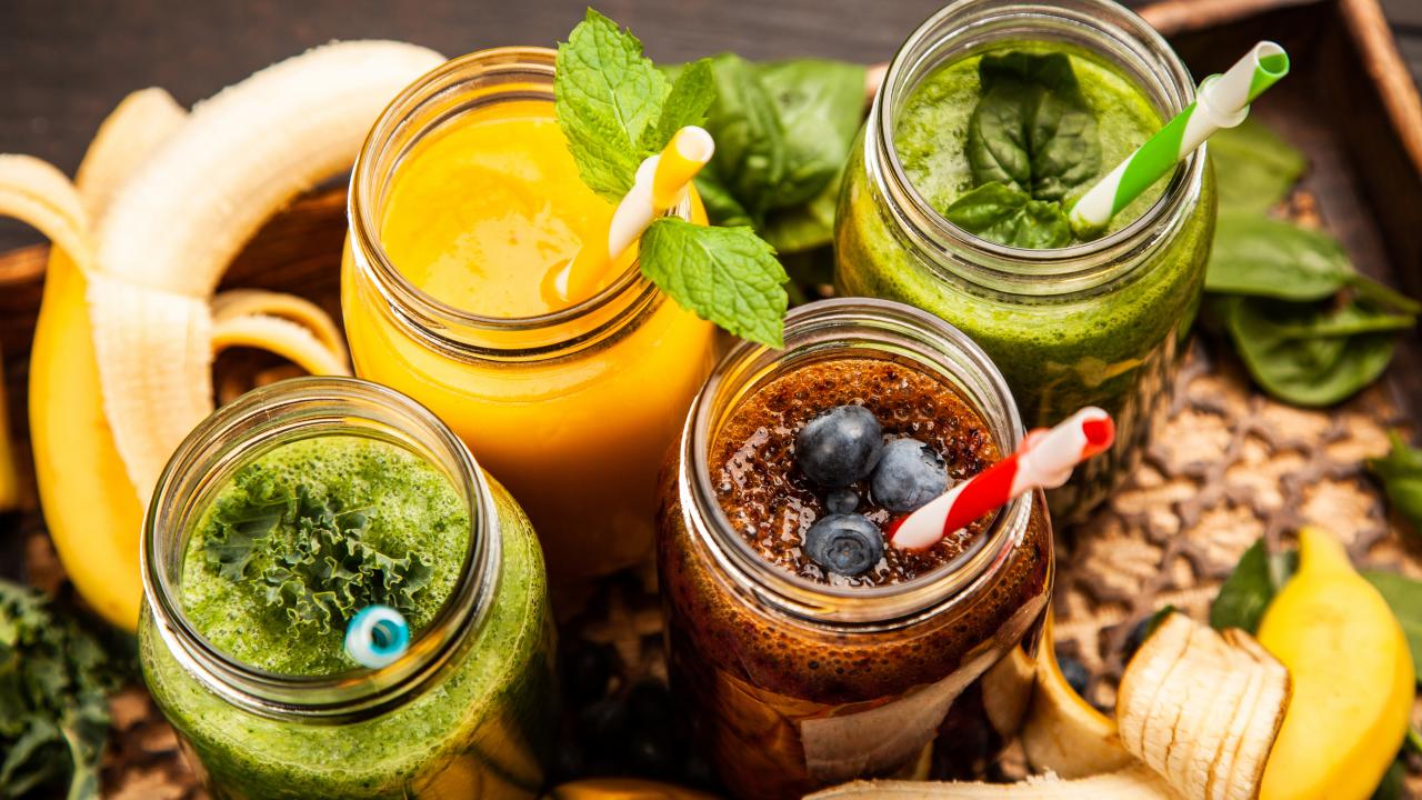 » Wallpaper Smoothie jars on a banana table