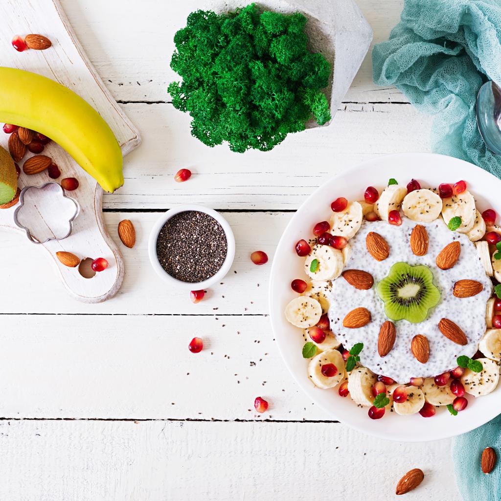 Wallpaper Dessert with bananas, pomegranates and almonds