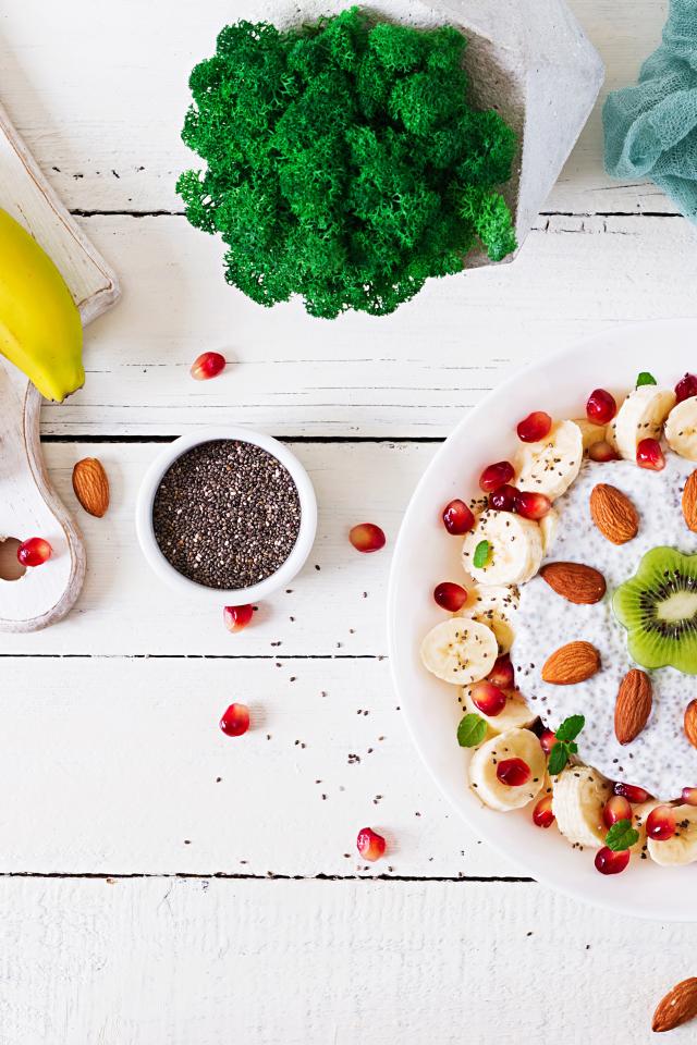 Wallpaper Dessert with bananas, pomegranates and almonds