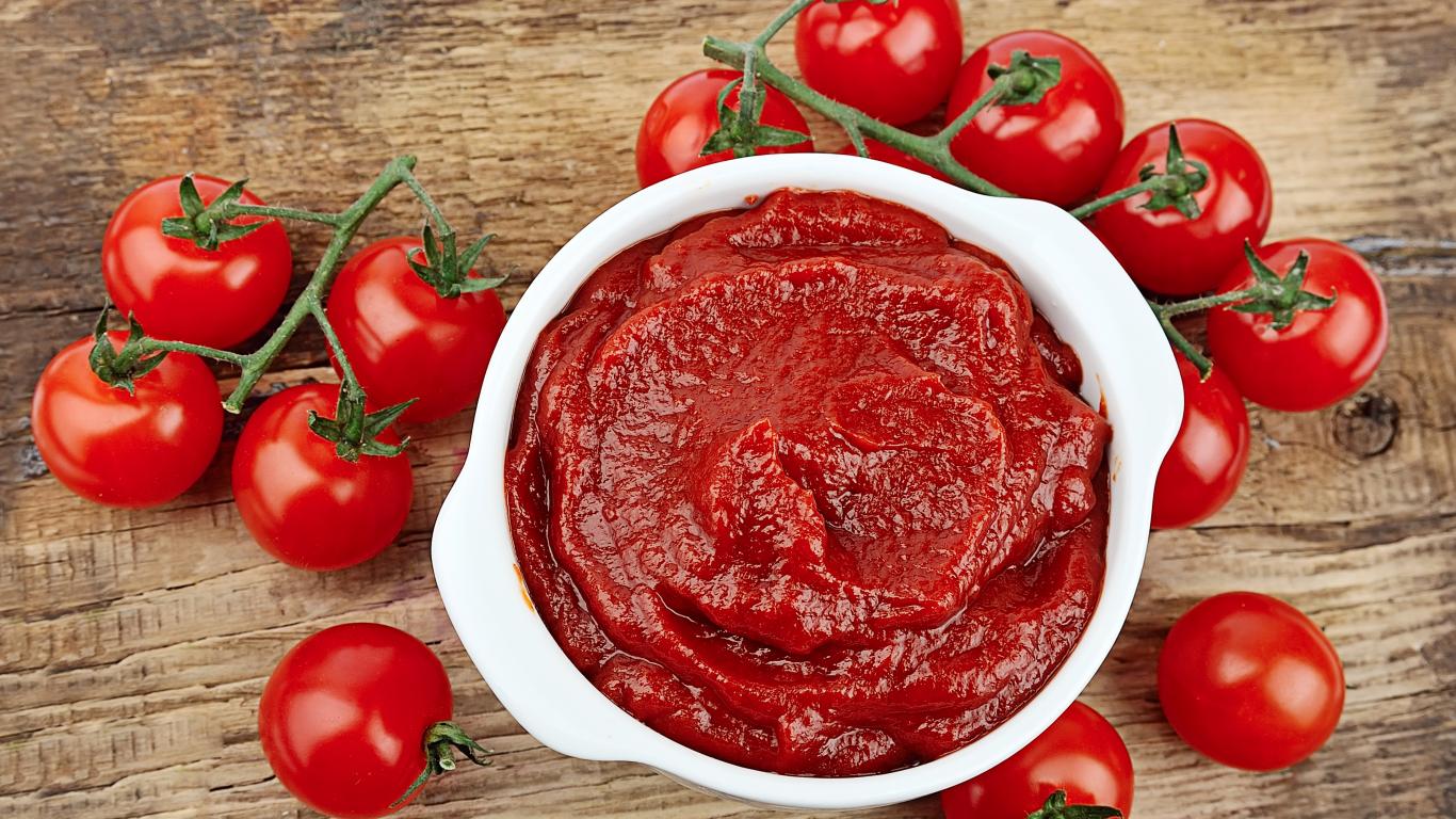 Wallpaper Red ripe tomatoes on the table with ketchup