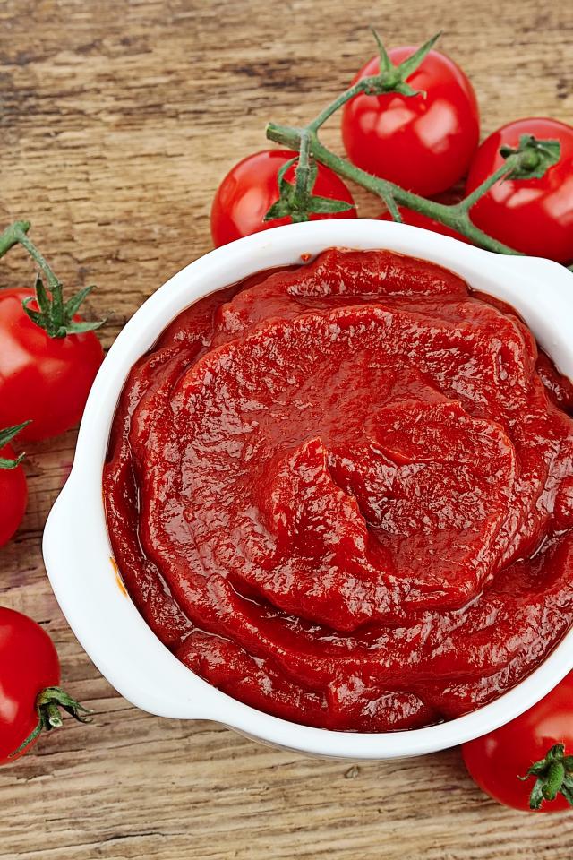 Wallpaper Red ripe tomatoes on the table with ketchup