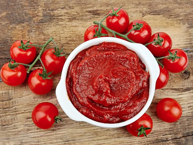 Wallpaper Red ripe tomatoes on the table with ketchup