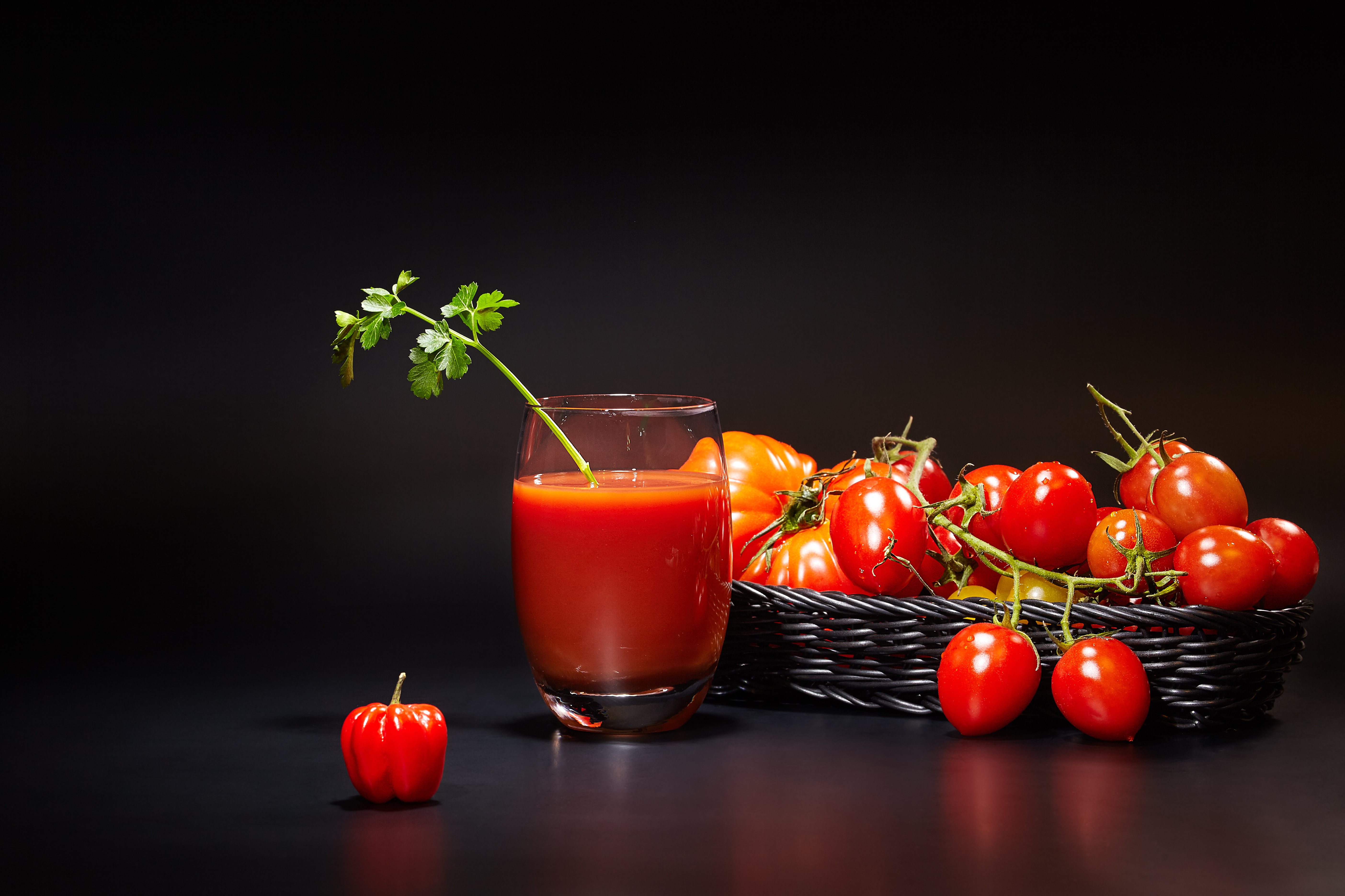 Wallpaper A glass of tomato juice on the table with tomatoes
