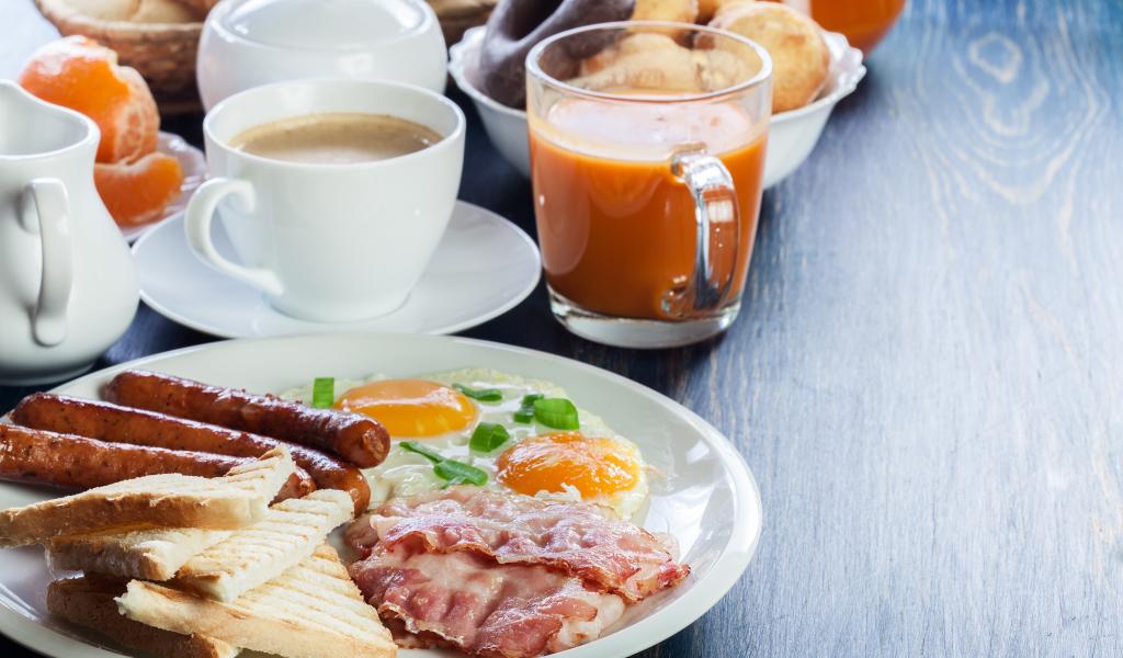 Wallpaper Hearty breakfast on the table with tulip flowers