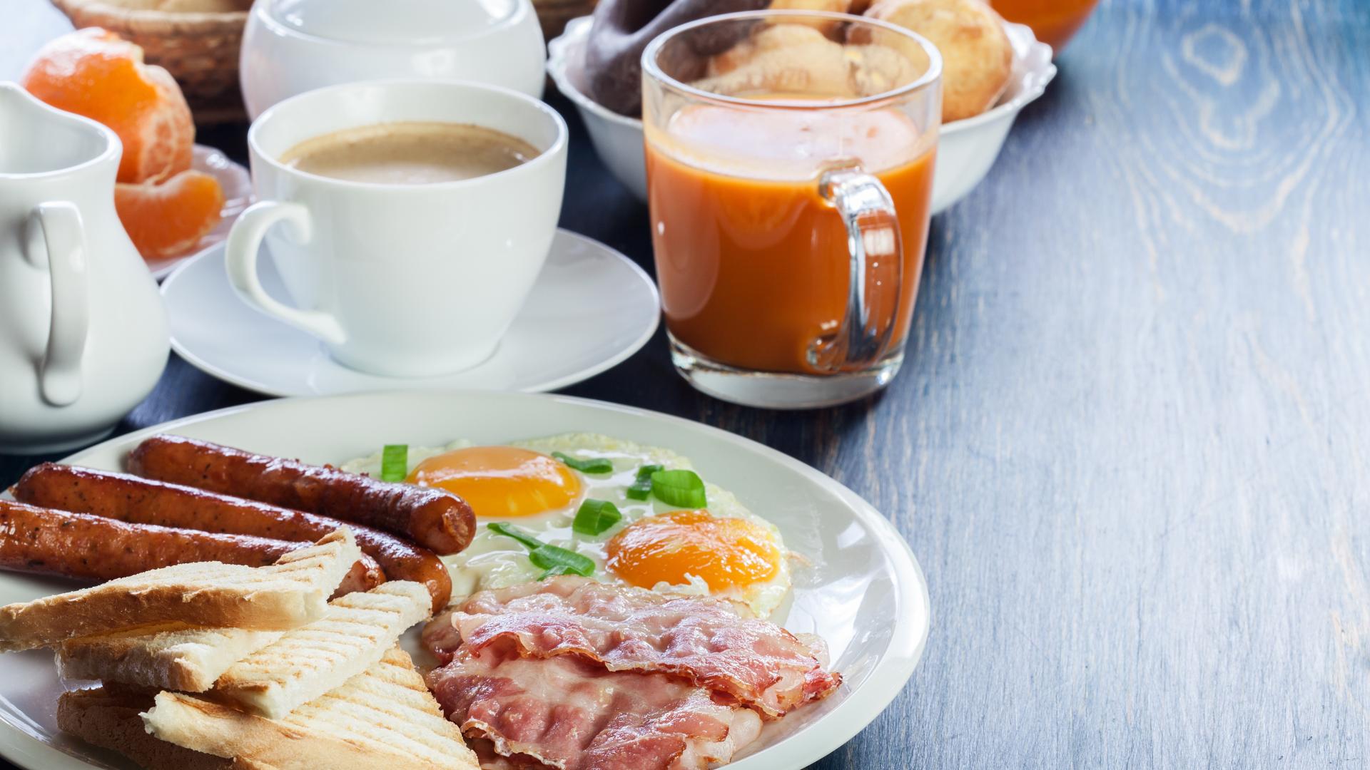 Wallpaper Hearty breakfast on the table with tulip flowers