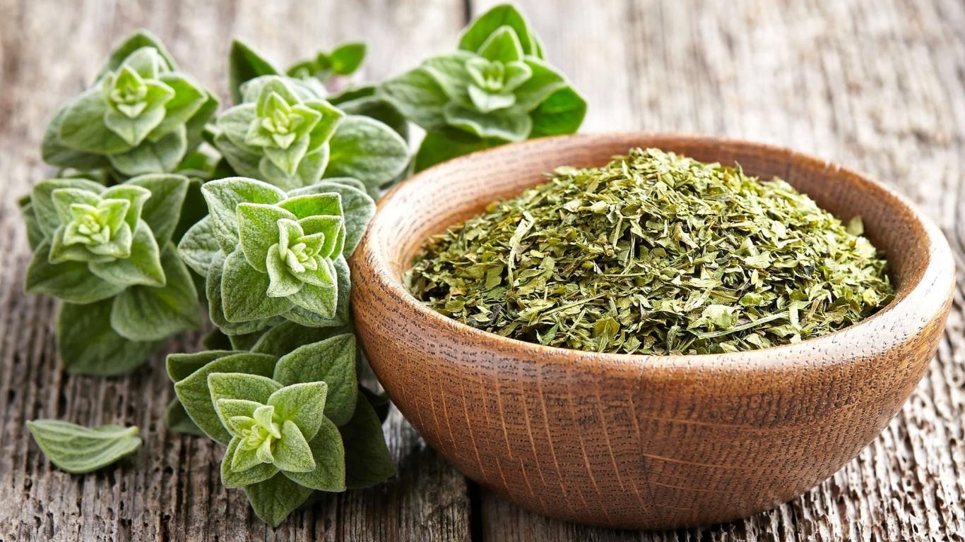 Wallpaper Dry oregano herb in a wooden bowl on the table