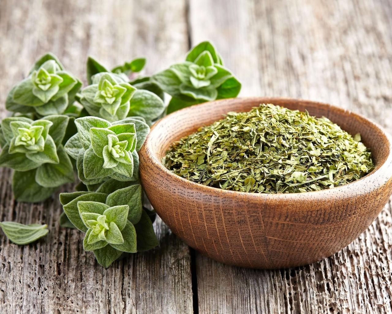 Wallpaper Dry oregano herb in a wooden bowl on the table
