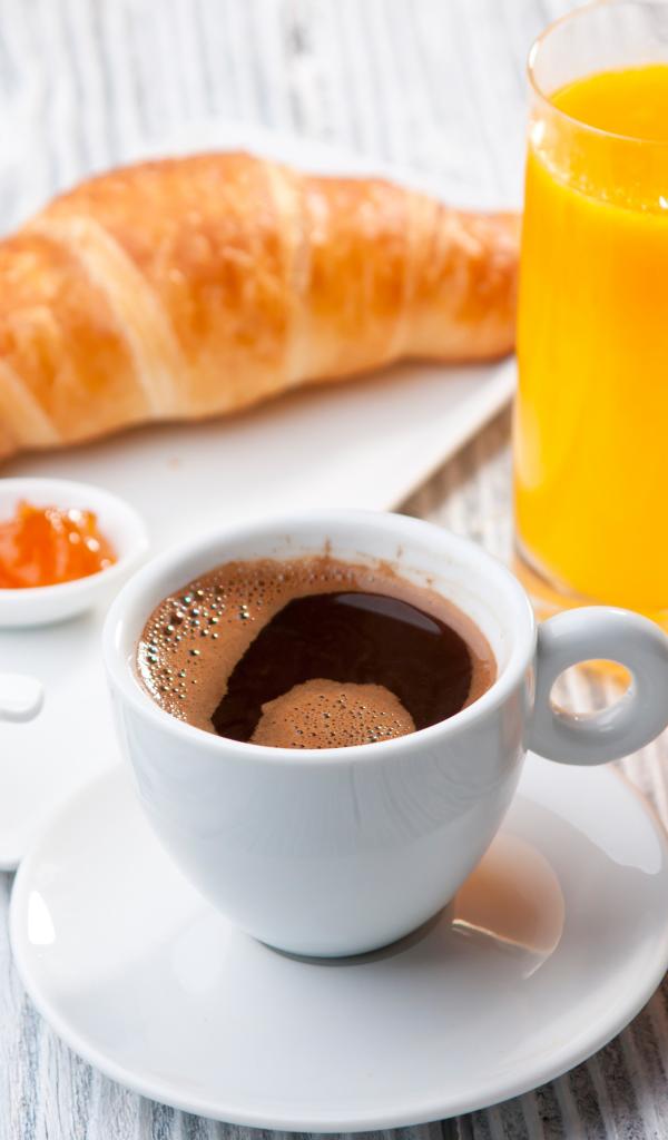 Wallpaper A cup of coffee on the table with juice and croissant