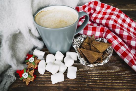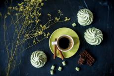 Wallpaper Cup of coffee on the table with marshmallows and chocolate