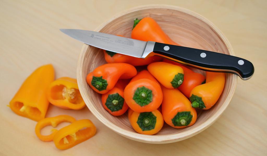 Wallpaper Bulgarian pepper in a bowl with a knife