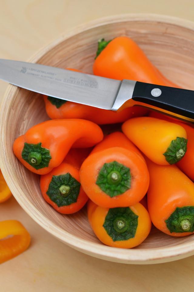 Wallpaper Bulgarian pepper in a bowl with a knife