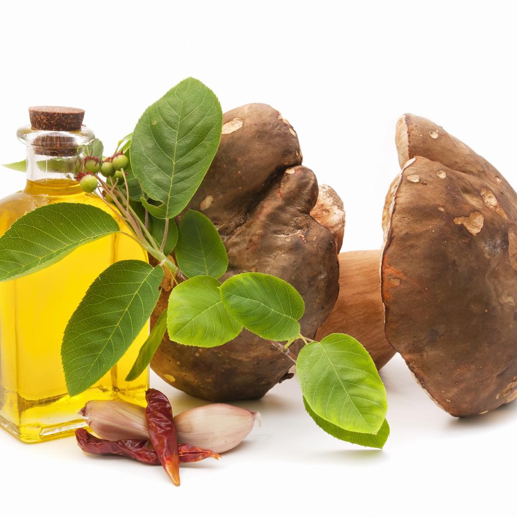 Wallpaper Mushrooms on a white background with olive oil and garlic