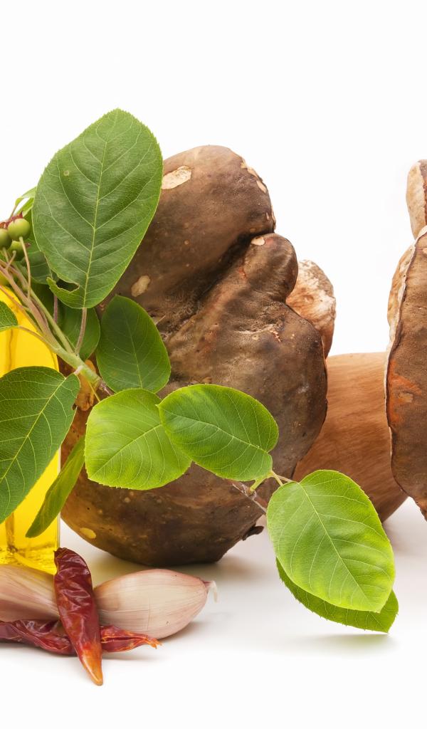 Wallpaper Mushrooms on a white background with olive oil and garlic