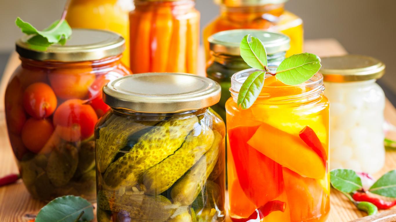 » Wallpaper Preservation in glass jars on the table with spices