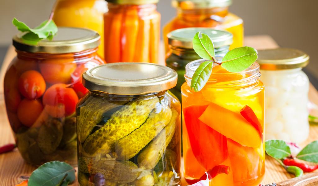» Wallpaper Preservation in glass jars on the table with spices