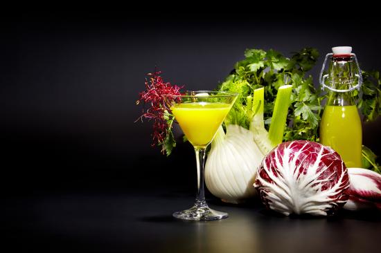 Wallpaper Vegetables with greens on a gray background with a cocktail