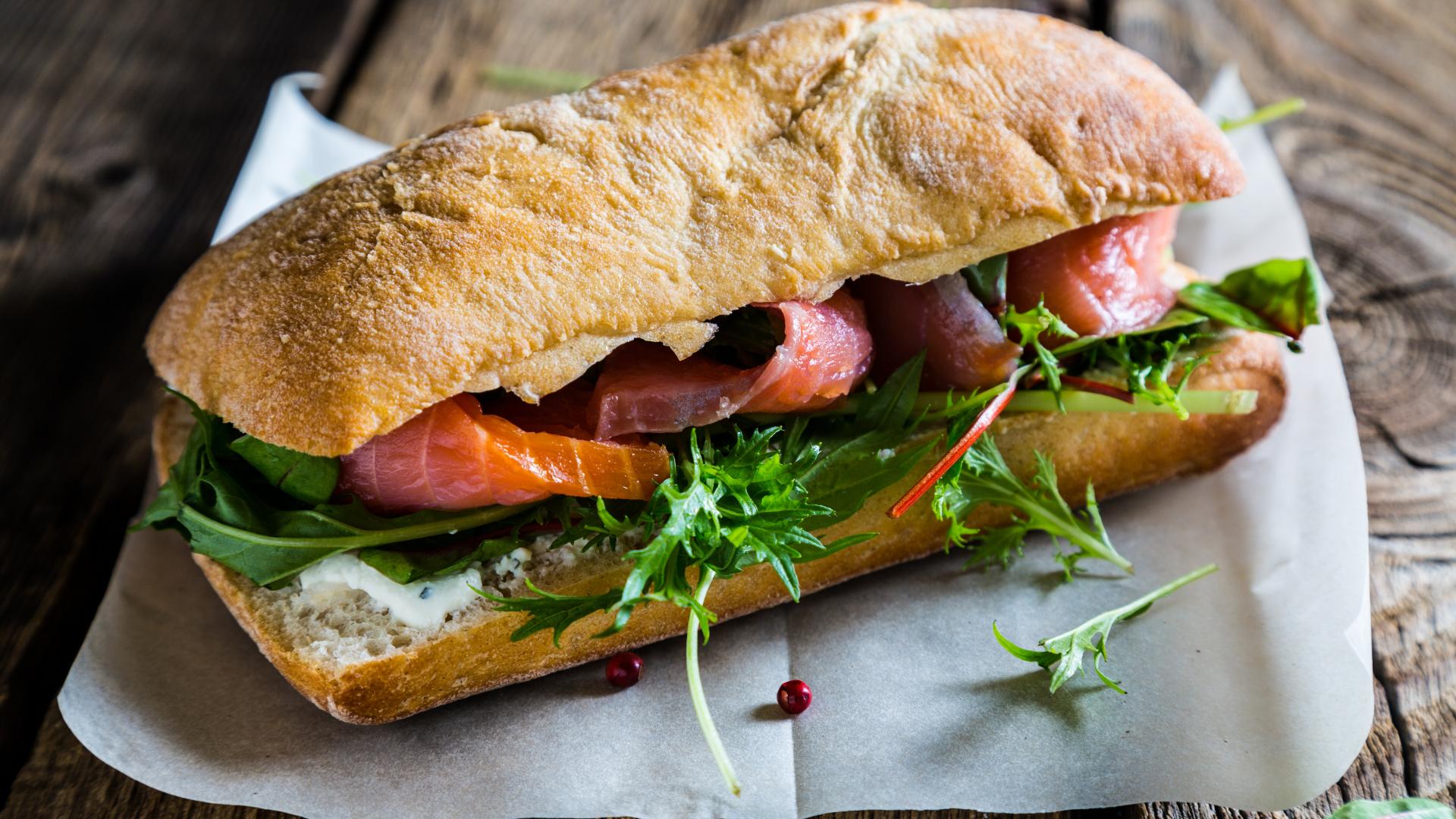 Wallpaper Sandwich with greens and red fish