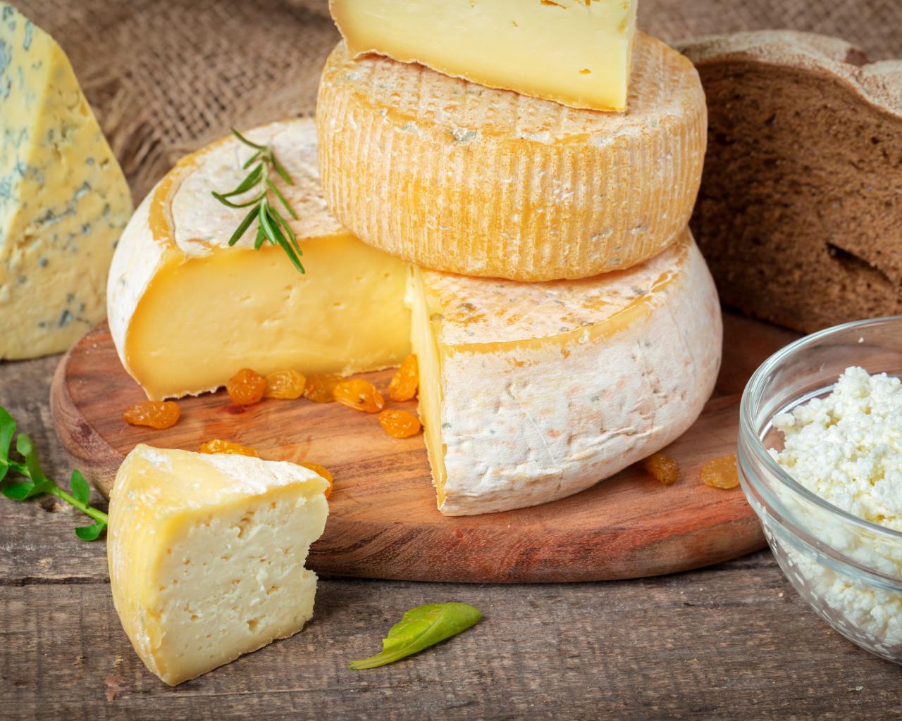 Wallpaper Cheese with mold on the table with bread and curd