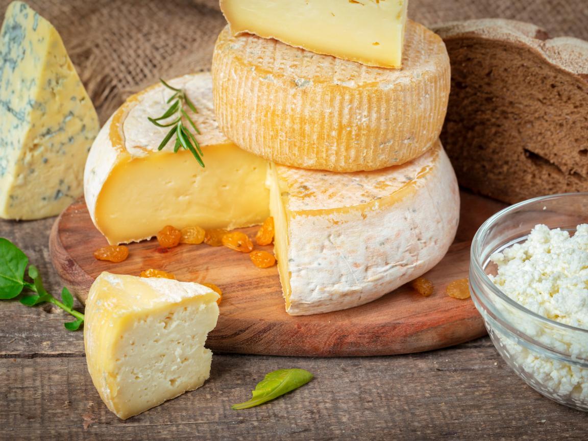 Wallpaper Cheese with mold on the table with bread and curd