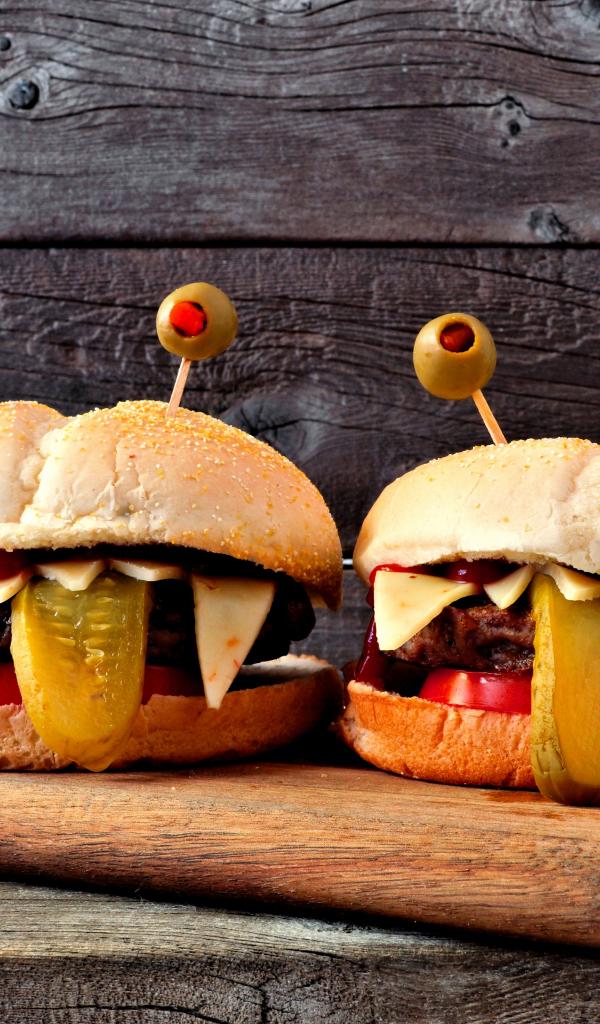 Wallpaper Funny burgers on a cutting board