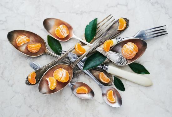 Wallpaper Cutlery on the table with mandarin slices