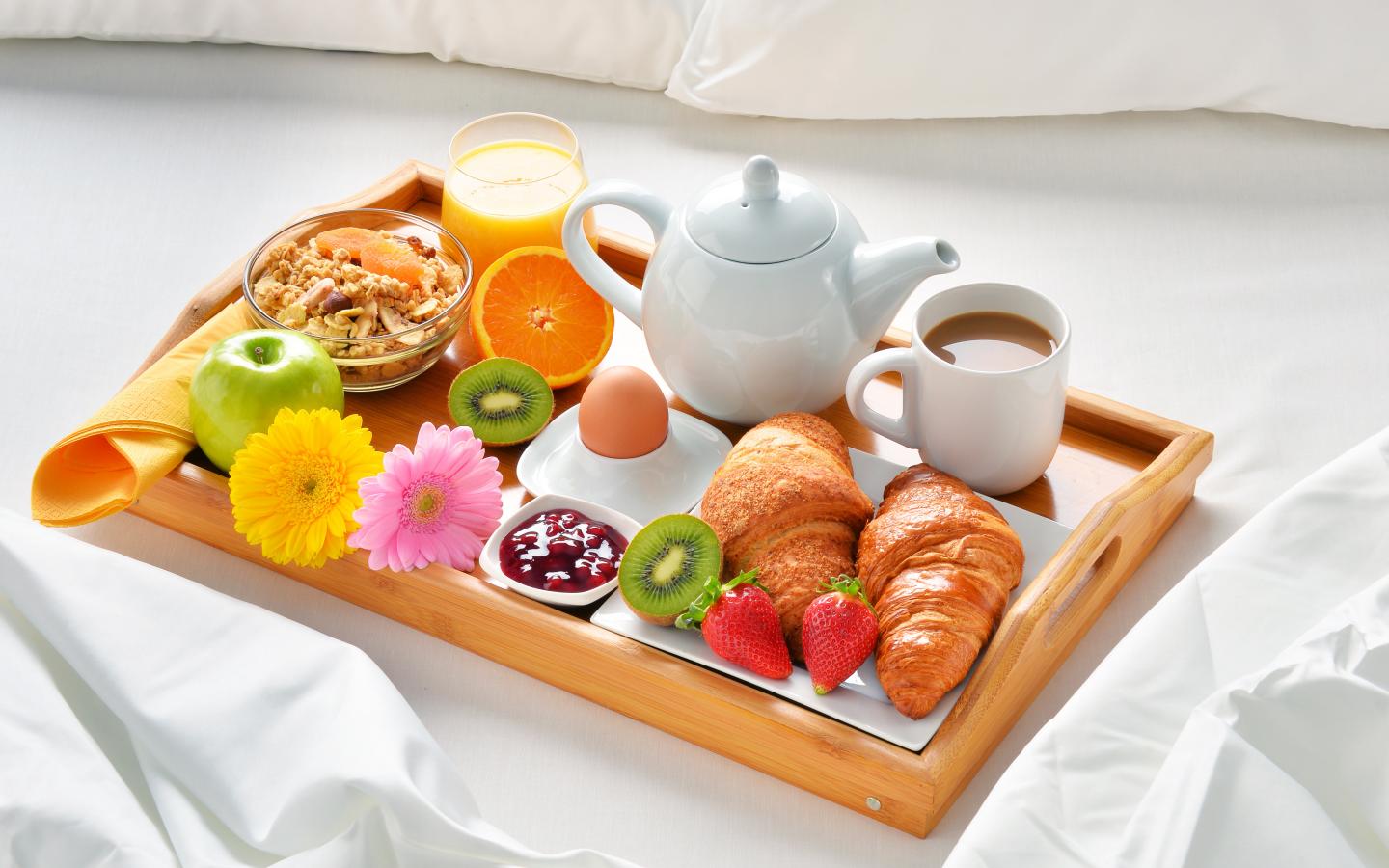 Wallpaper Breakfast for the sweetheart in bed on a tray