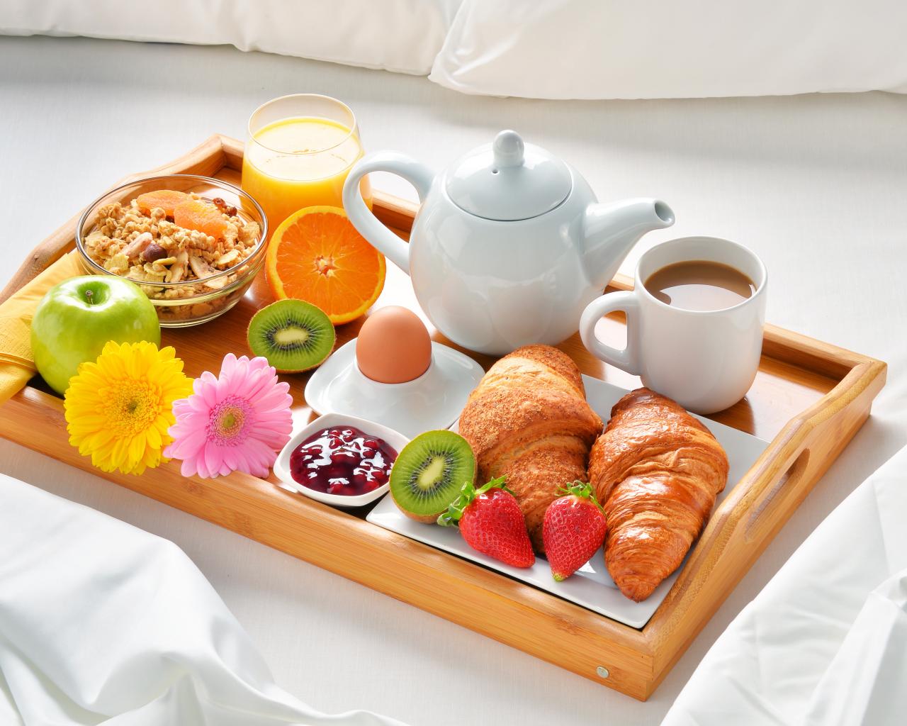 Wallpaper Breakfast for the sweetheart in bed on a tray
