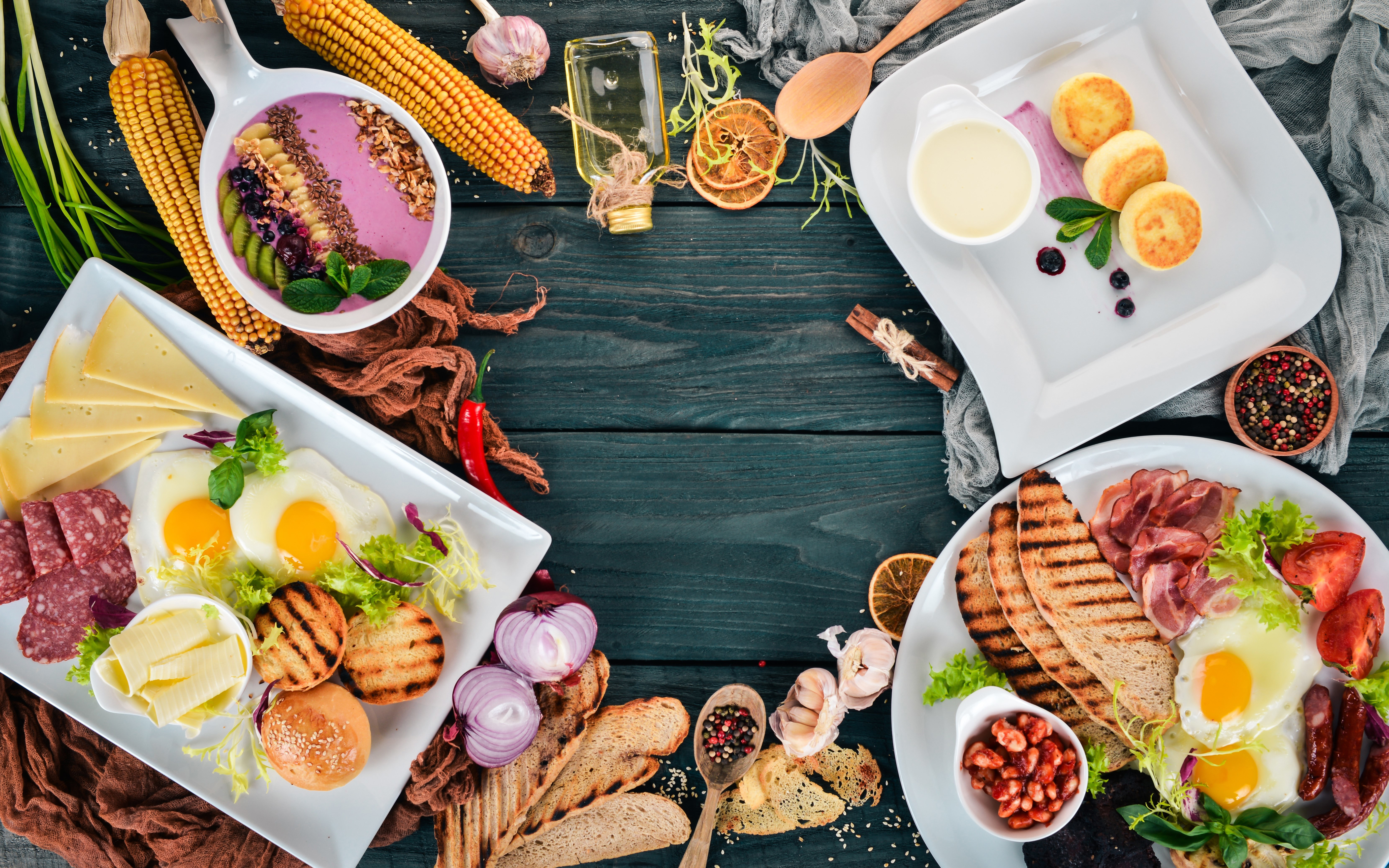 Wallpaper Hearty breakfast on the table with spices