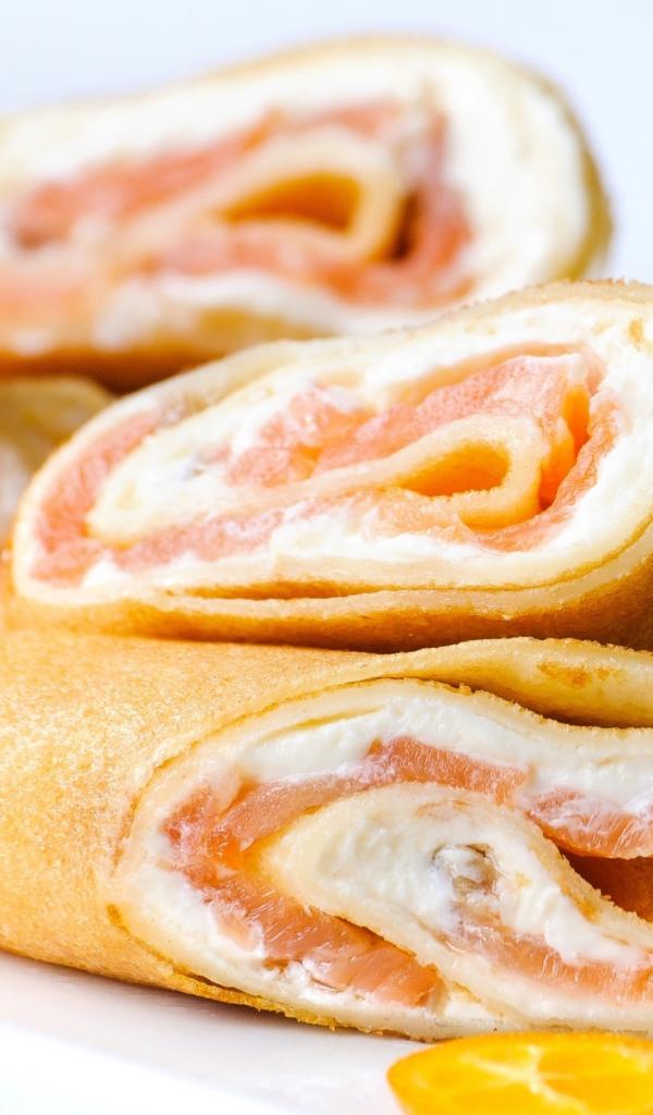 Wallpaper Pancakes Rolls with Red Fish and Cheese