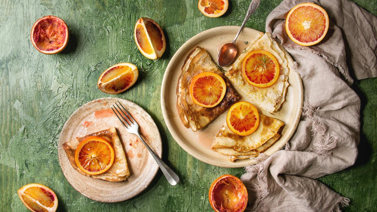 Wallpaper Thin pancakes with oranges on the table